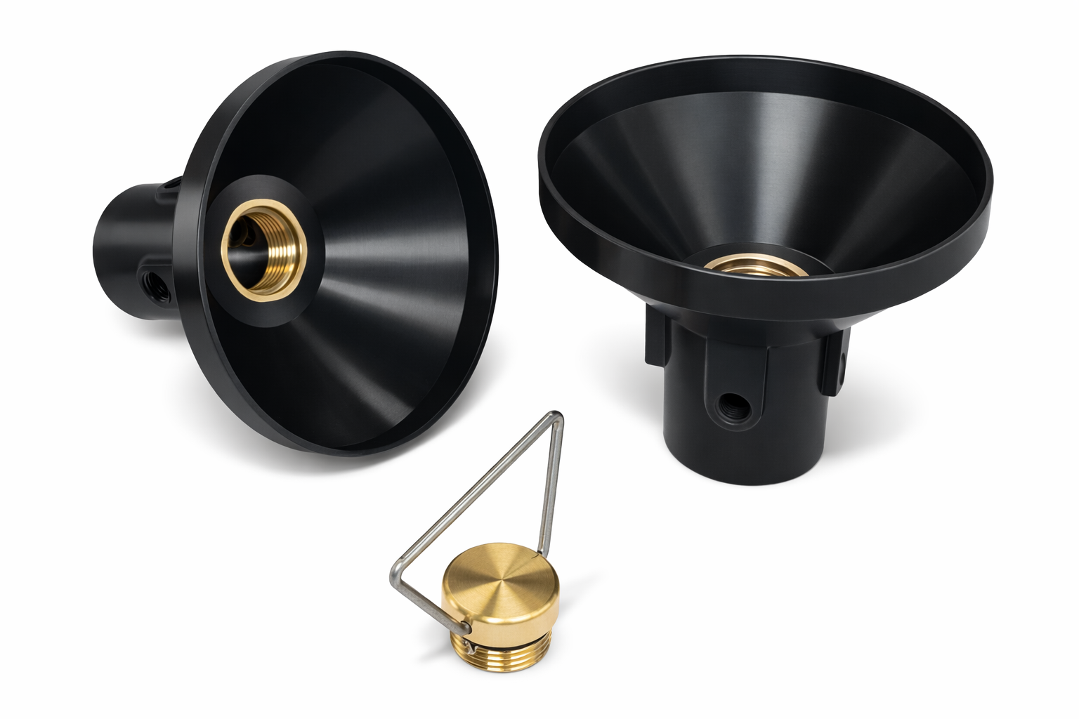 Lanzoni funnels are made of high-performance technical material based on glass fiber reinforced polyamide, designed to ensure high mechanical strength, dimensional stability and long-term durability even under intensive use conditions.